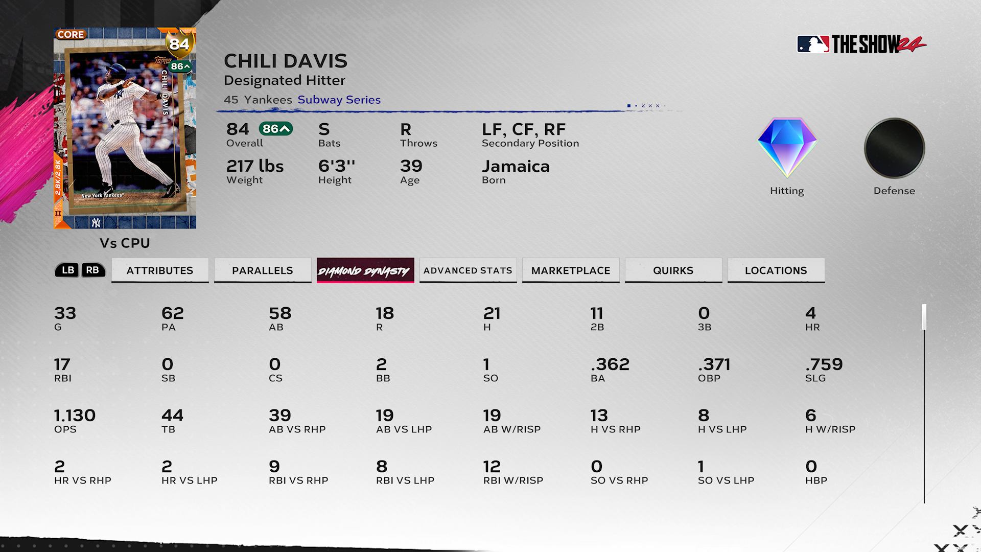 ํด ์ค๋์ ํ์จ .514, ํ๋ฐ 5, ํ์ 20